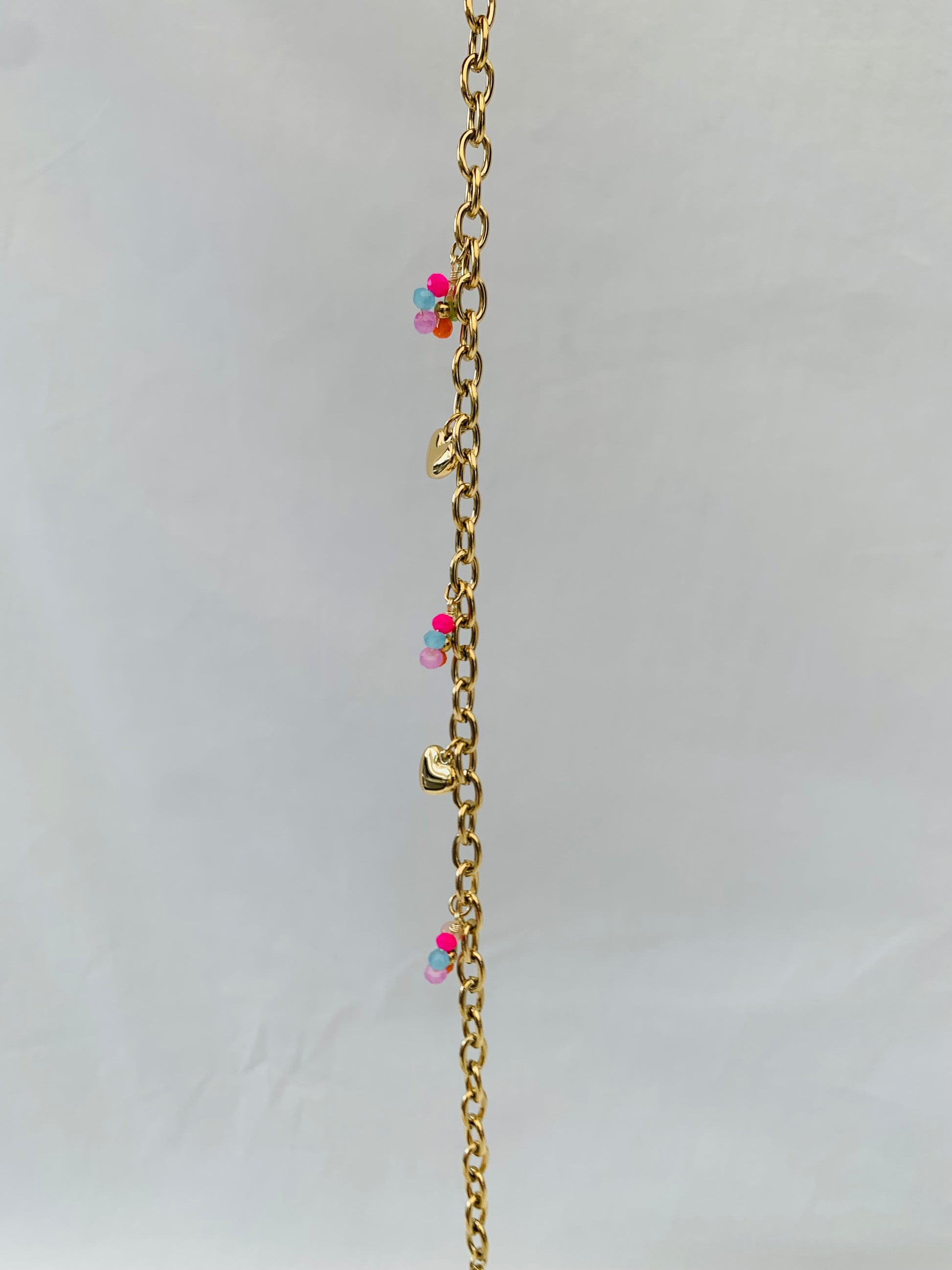 Fleurig enkelbandje met goud en verschillende kleurtjes. Stainless steel ✨