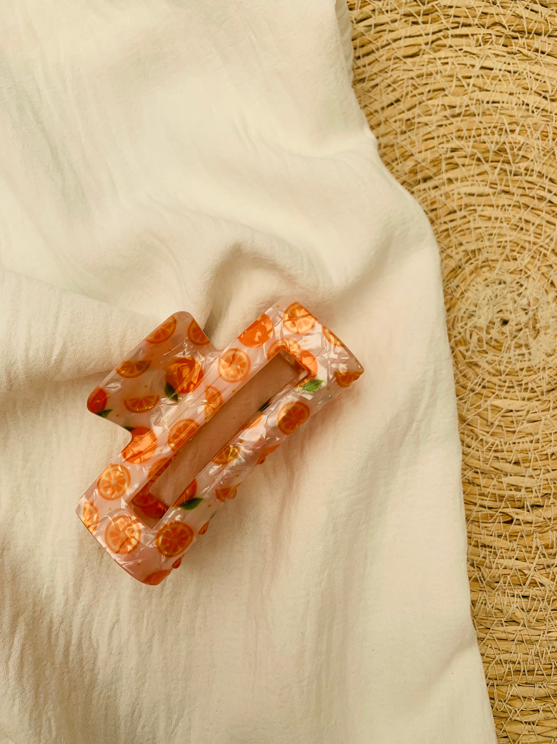 Een vrolijke haarklem die jouw kapsel direct opfleurt! Met een speels sinaasappelprint brengt hij energie en kleur in elke look. Perfect voor een losse knot, een halve opsteek of een casual paardenstaart: deze haarklem houdt alles stevig op zijn plek én laat je stralen. 🍊