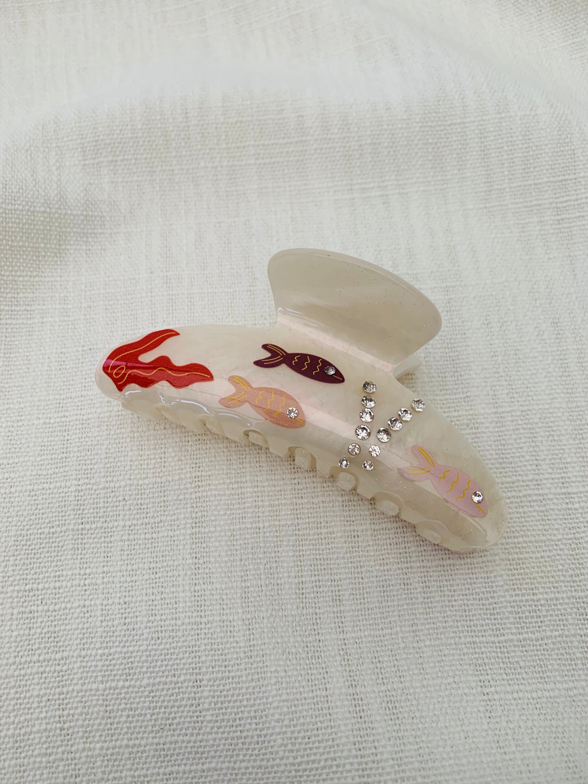- De haarklem is 10 cm lang en 4 cm breed.