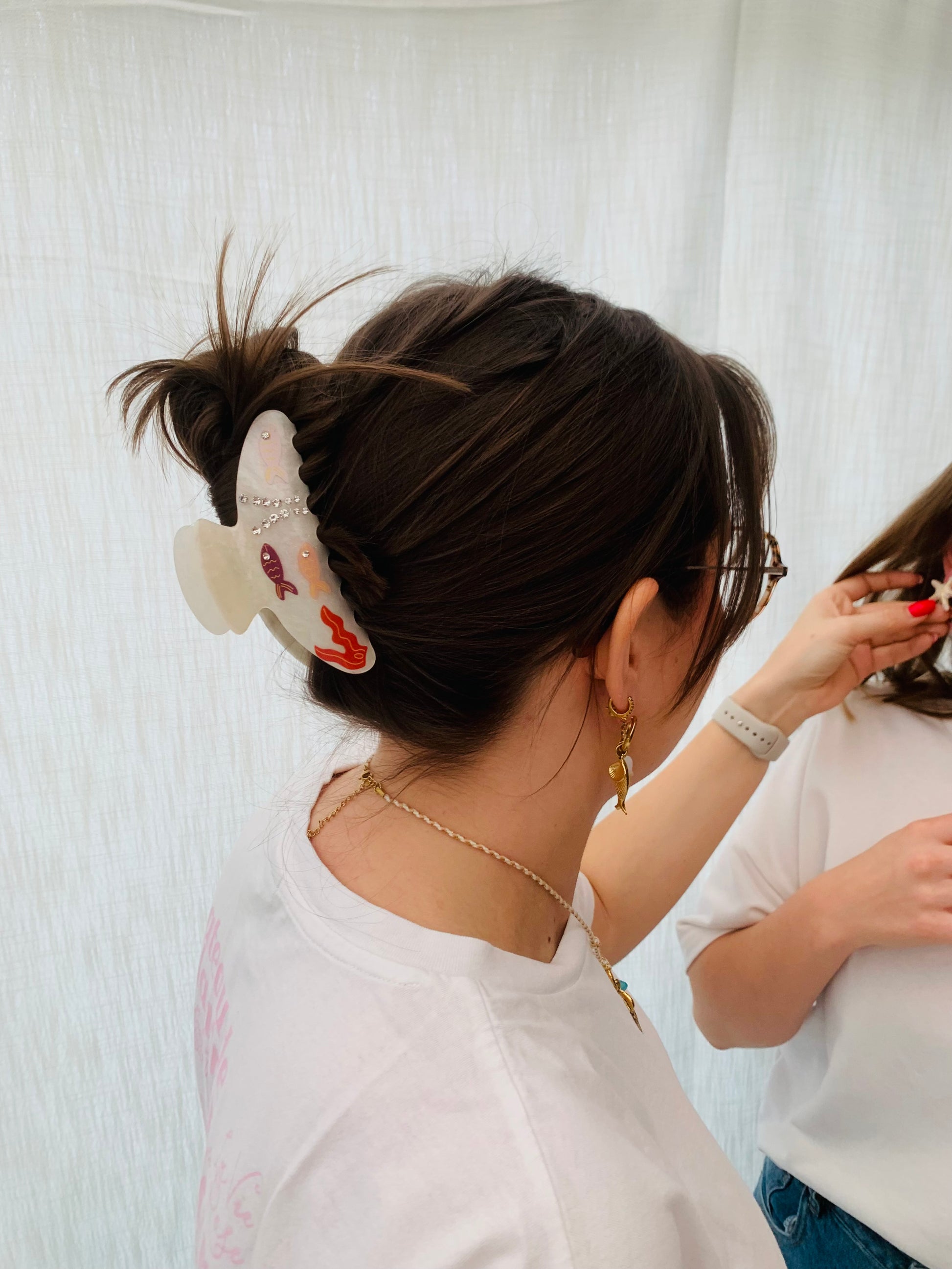 - De haarklem is gemaakt van kunststof.