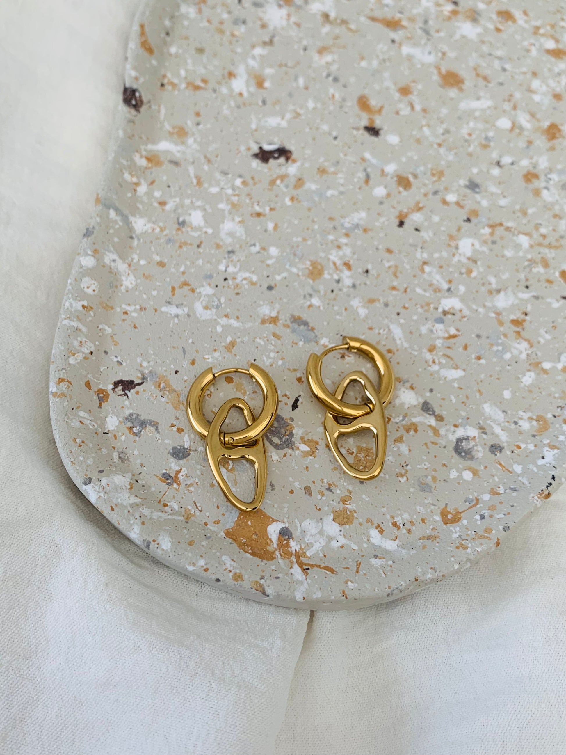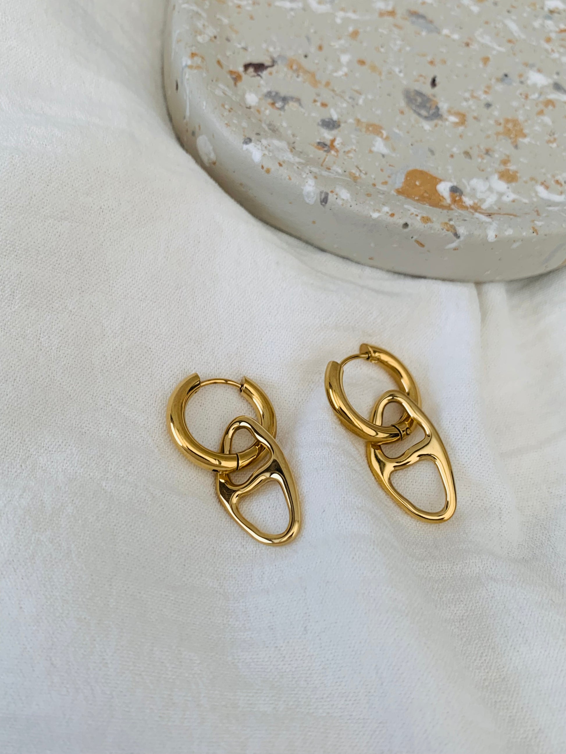Deze oorbellen combineren elegante gouden ringetjes met een speciaal hangertje voor een opvallende twist. Perfect om je look een persoonlijke en speelse touch te geven, waar je ook gaat. ✨ Stainless steel en nikkelvrij.