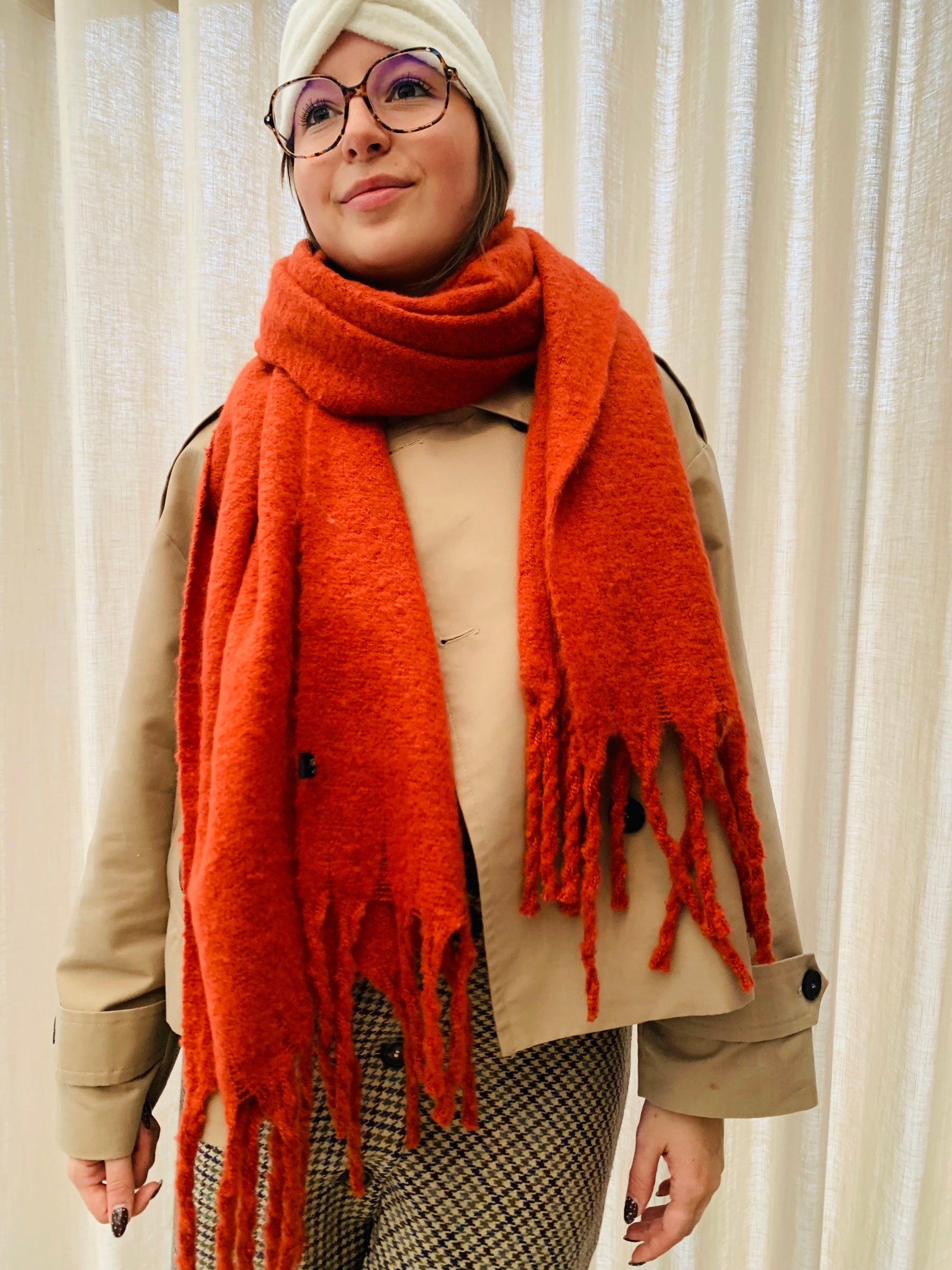 Omarm de winter met deze warme en zachte sjaal in een diepe, herfstige oranje tint. Perfect om jezelf lekker warm te houden tijdens koude dagen. Een echte must-have tijdens de koude herfstdagen en de winter die eraan komt. 🌟