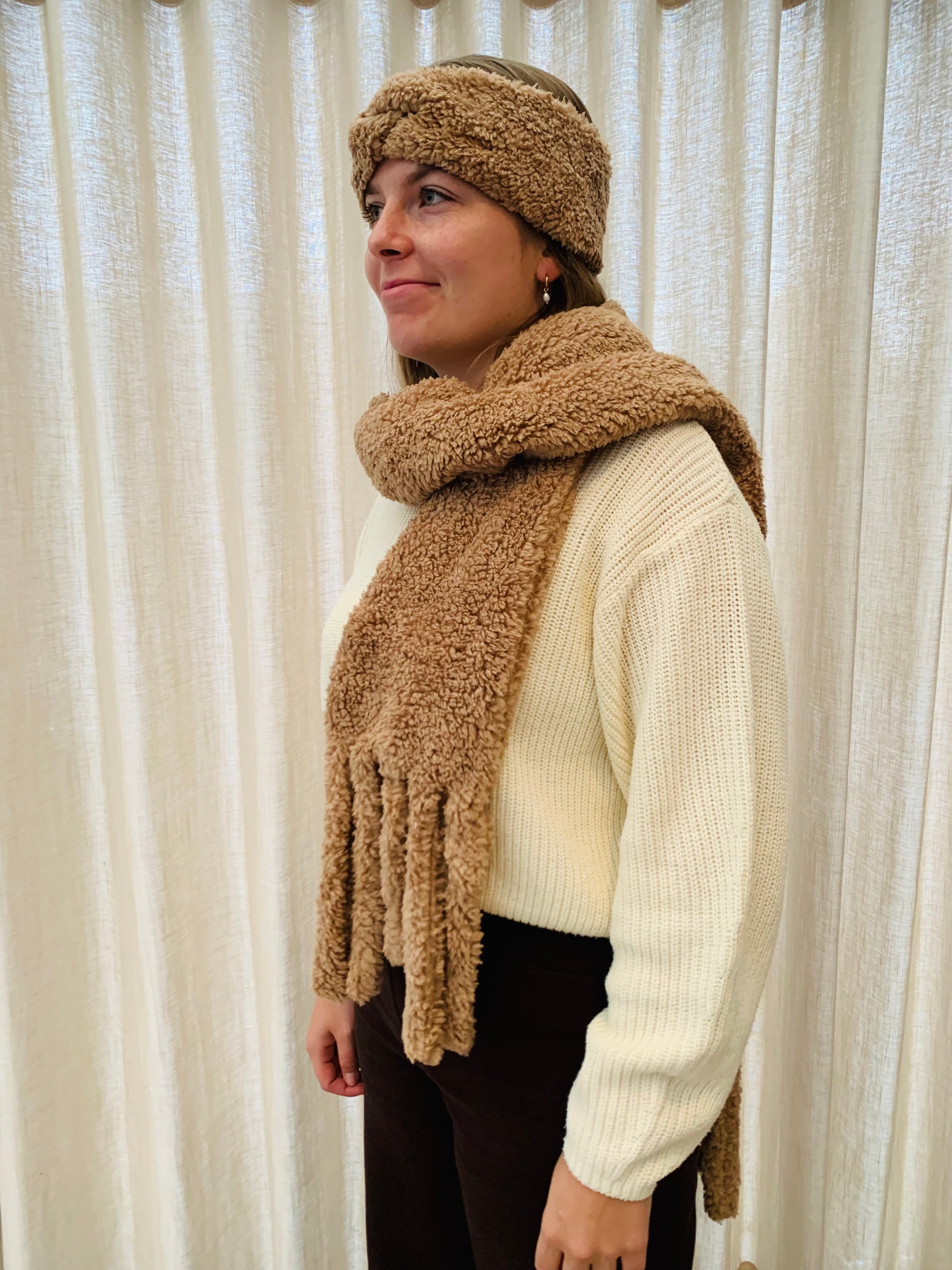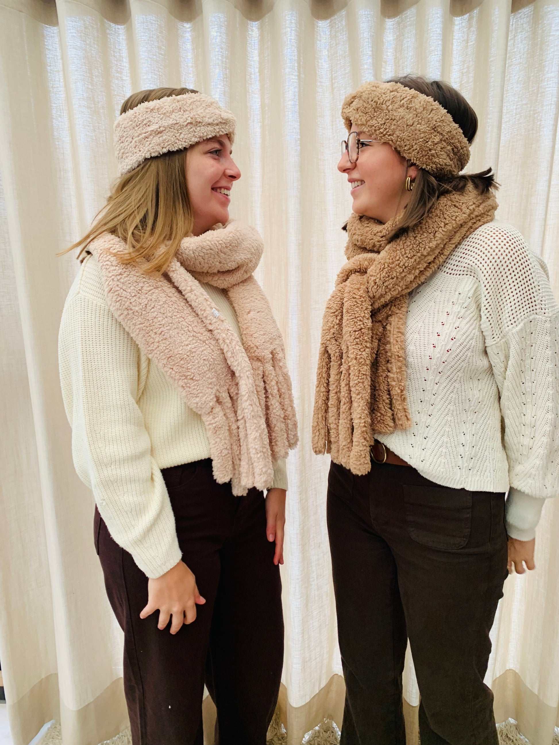 Hoe leuk zijn deze sjaals? Draag hem helemaal rond of half over je schouder, voor naar het werk, een casual avond of een flinke wandeling buiten. Voor alle gelegenheden steelt deze sjaal de show. Verkrijgbaar in drie kleuren (zwart, beige en bruin), bijhorende wanten en hoofdband verkrijgbaar. ✨